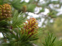 松の雌花が受粉後に成長し2年かかってその鱗片が変化し、葉の間に新たな種子を作る。