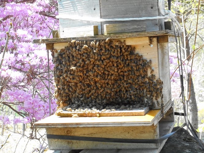 大勢の働き蜂の羽音がブンブンブンとすごい羽音