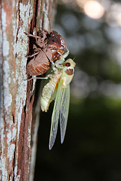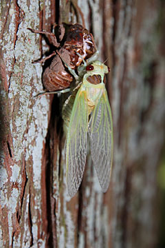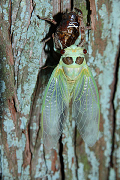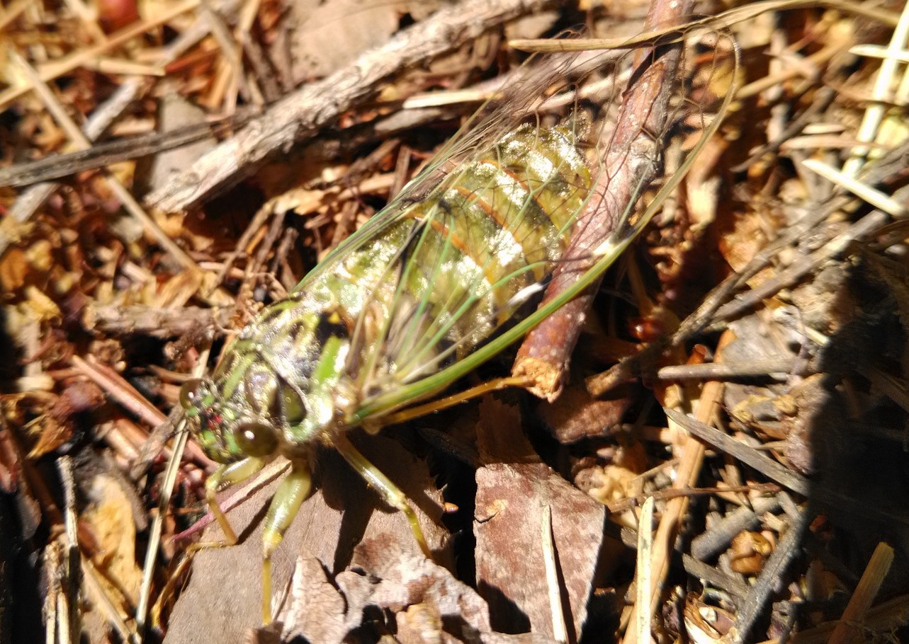 鮮やかな緑色でした。羽化してあまり時間が経っていないので
