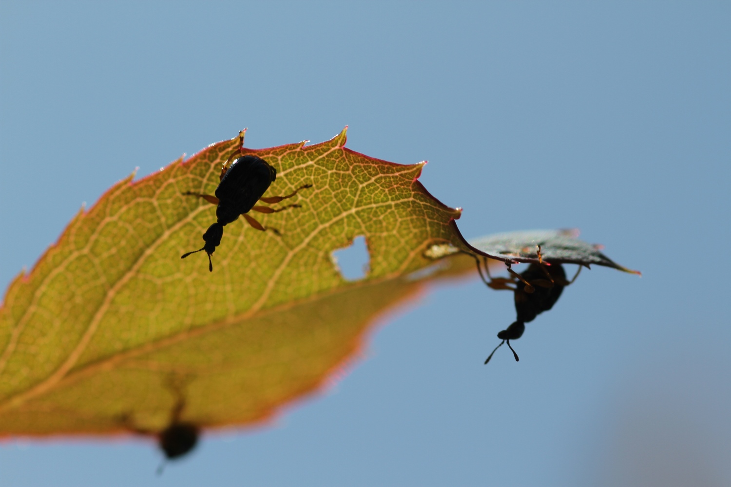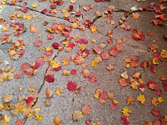 秋になると葉の根元と木の枝の間にコルク状の「離層(りそう)」という物質ができる。これにより葉の中に光合成で作られていた糖分がたまり、濃度が上がる。そこに日光が当たると葉の葉緑素「クロロフィル」が分解され糖分と化学反応し「アントシアニン」という赤色の色素になる。「アントシアニン」が増えると葉の表面が赤くなる。「アントシアニン」は「カロチノイド」と違って、葉が緑色の時はまだ存在していない。ナナカマド、カエデ、うるしなど 何回か読んで覚えてね!