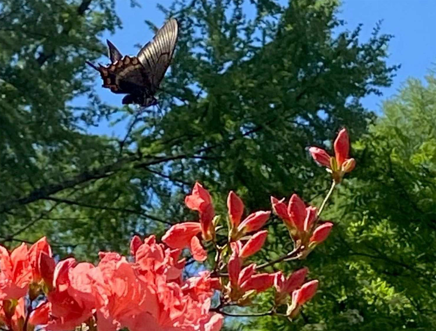 大勢の働き蜂を連れて新しい巣を探しに飛び立ちます。