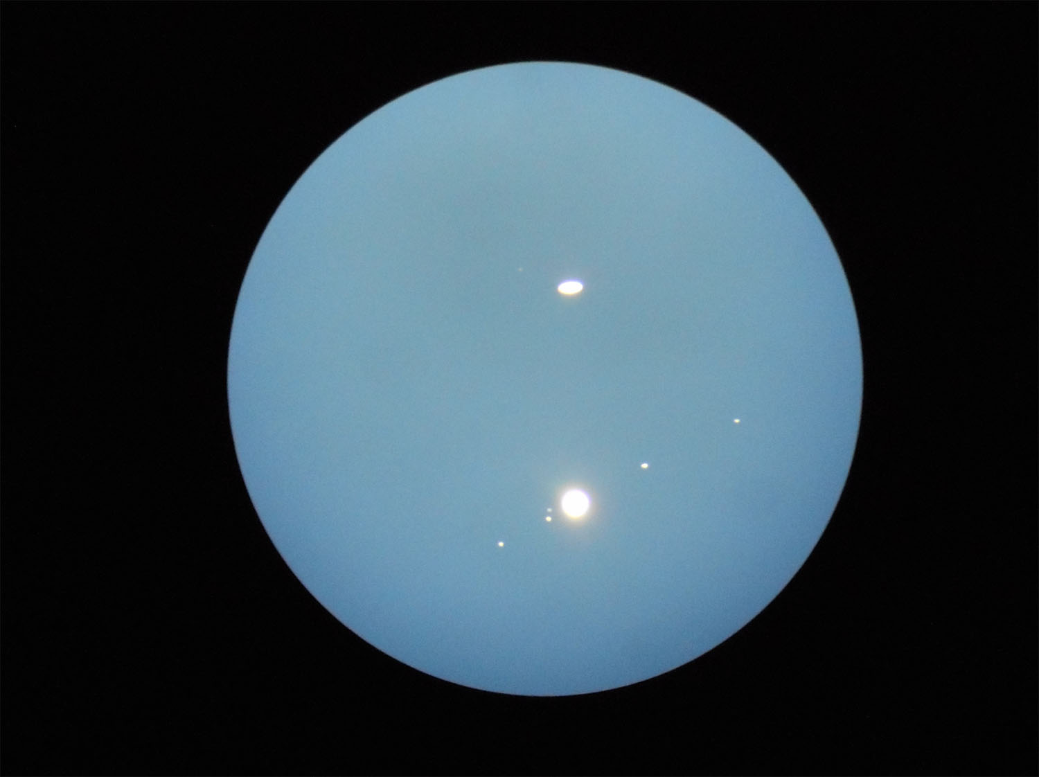 | (写真1)実際の空を撮影(右上が土星・左下が木星) |