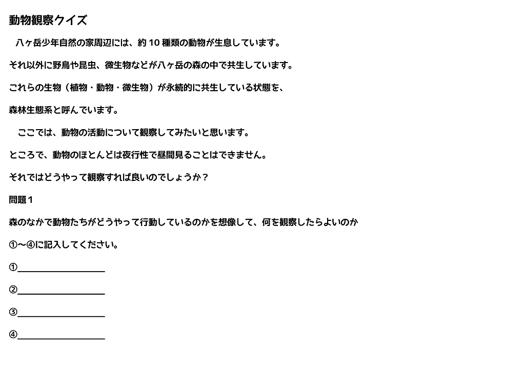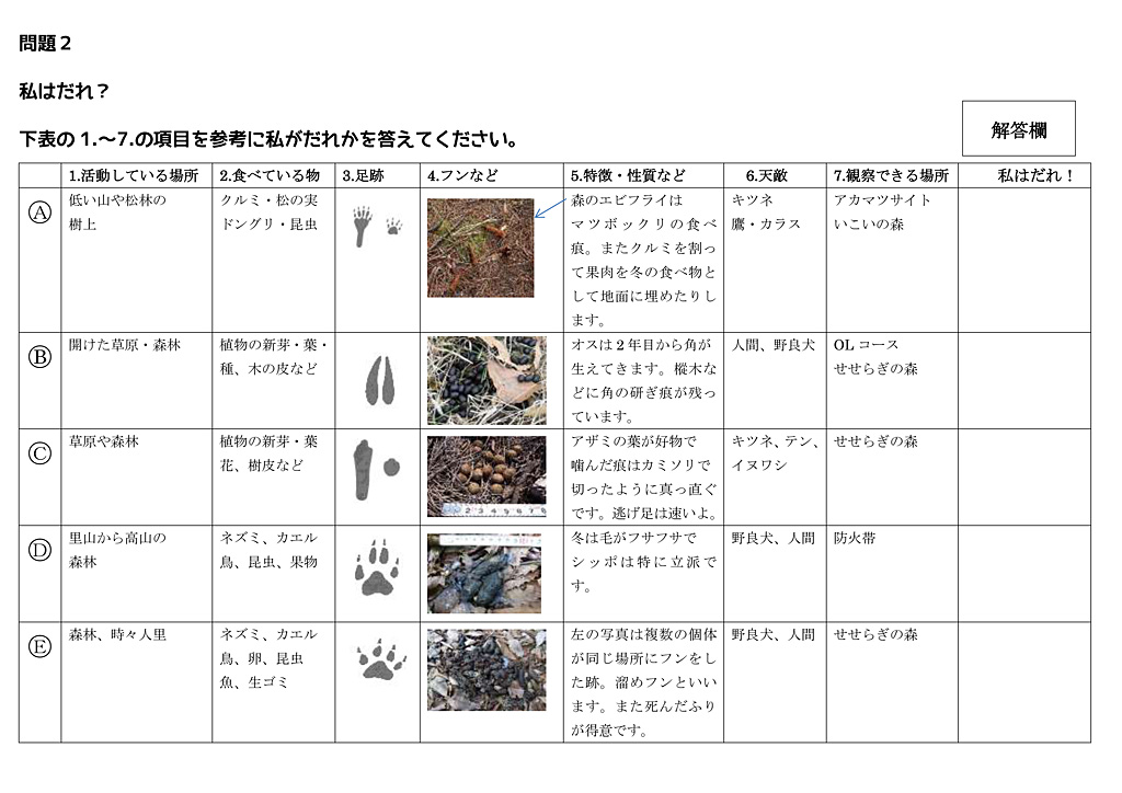 課題別学習(動物観察クイズ)