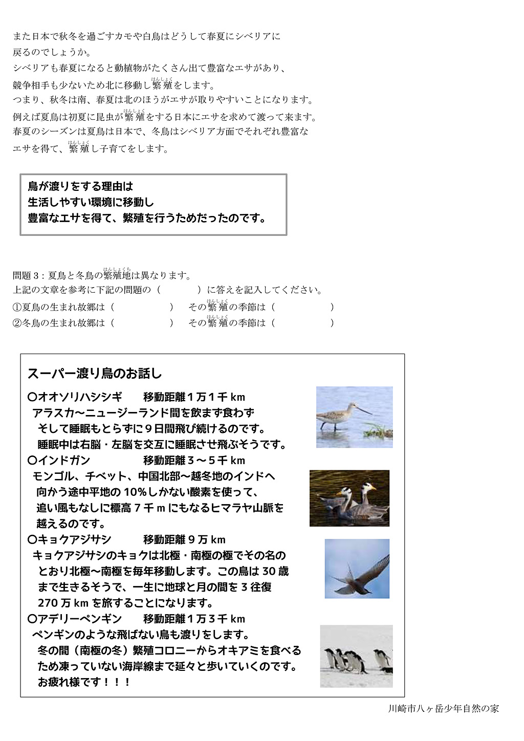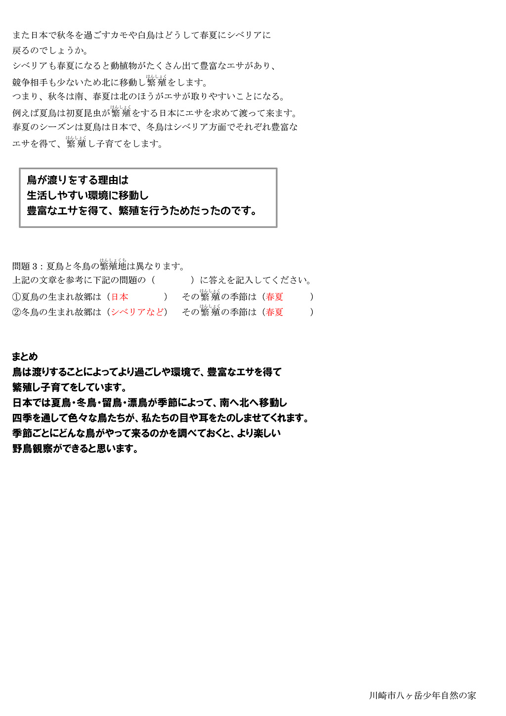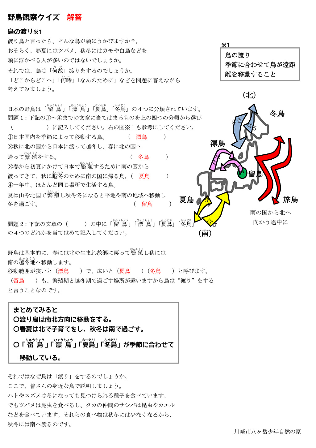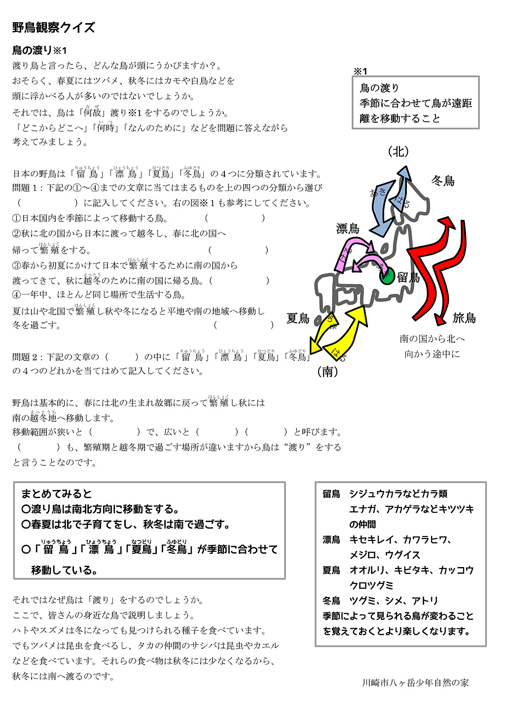 課題別学習(野鳥観察クイズ)